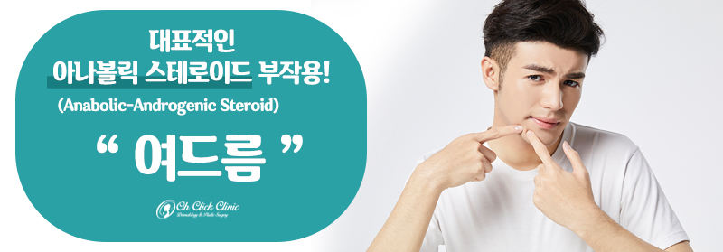 여드름은 아나볼릭 스테로이드 사용자의 절반 이상이 경험하는 부작용입니다. 단백 동화 스테로이드는 피지선을 자극하여 피지 분비를 자극하고 더 강렬하게 만듭니다. 단백 동화 스테로이드 사용 중 여드름이 나타나면 약물 복용을 중단하고 전문적인 피부과 치료로 여드름을 치료해야합니다. 초기에 치료하면 흉터 없이 치료할 수 있는 병변도 시기를 놓치면 오랫동안 흉터로 남을 수 있습니다. 혼자서 해결하려 하지 마시고 가까운 피부과 전문의에게 치료를 받으시는 것을 권해드립니다.