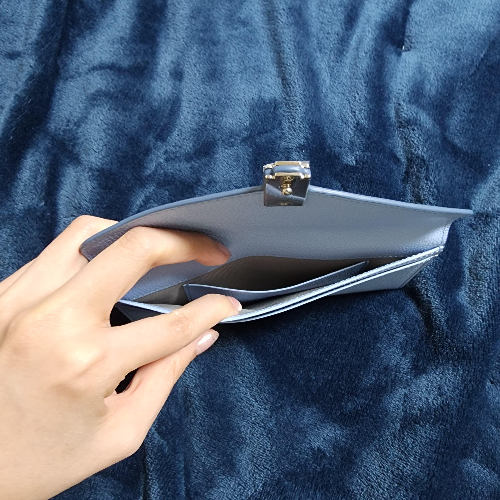 매우 얇기 때문에 손바닥에 쏙 들어가는 프라다 지갑과는 또 다른 느낌으로 손에 들고 다닐 수 있습니다.