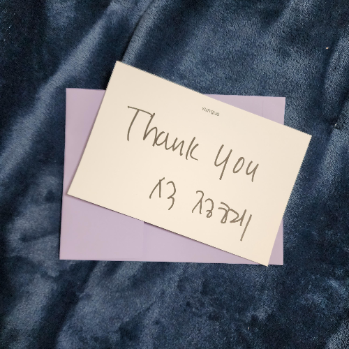 봉투에는 석정혜 디자이너의 친필 사인이 담긴 감사 카드가 들어 있었다.