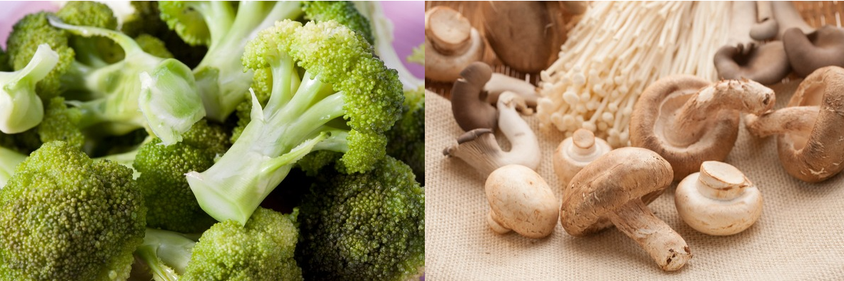 브로콜리와 버섯의 식용 가능한 부분을 모두 사용