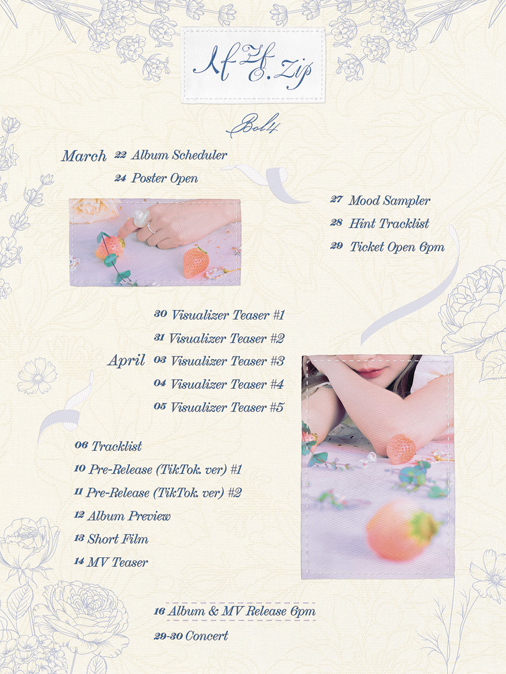 플래너 속 안지영은 앞서 공개된 커밍순 이미지처럼 딸기를 소품으로 활용한다.~에서 그림의 클로즈업이 포함되어 있습니다. 또한 꽃과 리본, 자수가 어우러진 디자인으로 볼빨간사춘기 특유의 로맨틱하고 러블리한 무드를 완성했다.