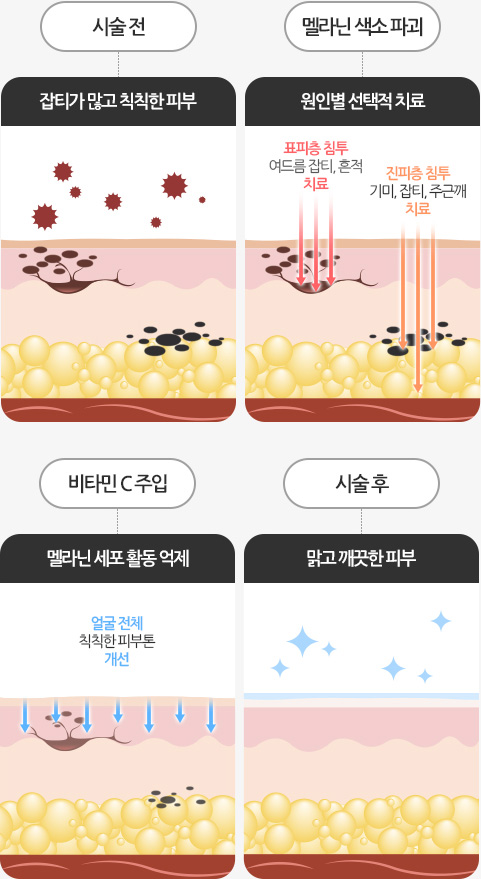 표시된 바와 같이, 멜라닌 세포는 피부 외층(케라티노사이트)과 피부 내층(섬유아세포)의 요인에 의해 영향을 받습니다. 즉, 과색소침착은 멜라닌 세포만을 선택적으로 치료하는 것이 아니라 표피와 내피를 모두 치료해야 합니다. 또한 과색소침착 피부를 조절하는 관점에서의 치료가 색소침착 피부 치료의 새로운 표적이 될 것임을 시사한다. 무엇인가요? 비디오를 확인하십시오.