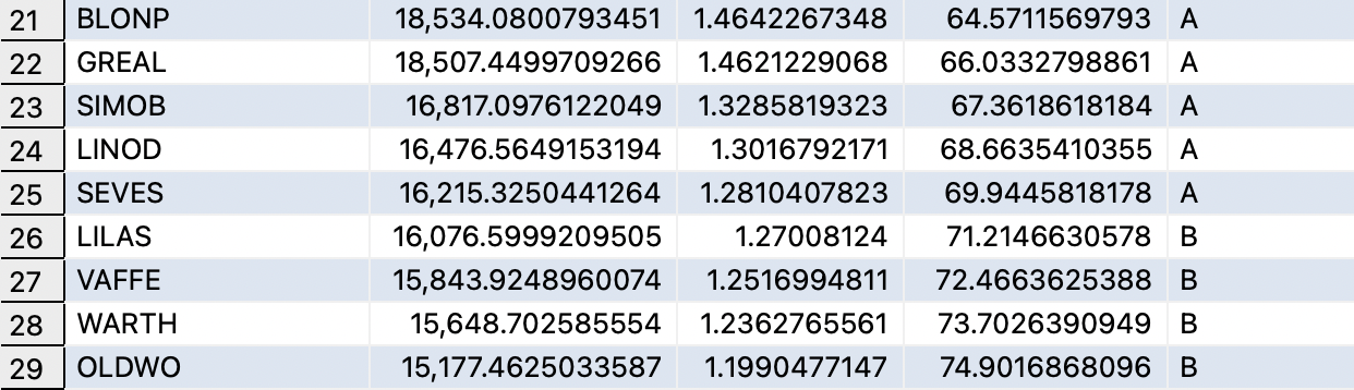 , sum(구성비) over (order by 구성비 desc) as 구성비누계
