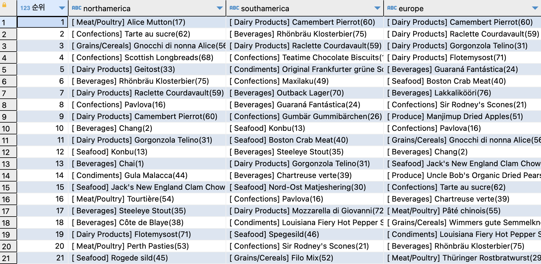 📌 2⃣.2⃣ 지역 별 판매된 제품 순위 📌