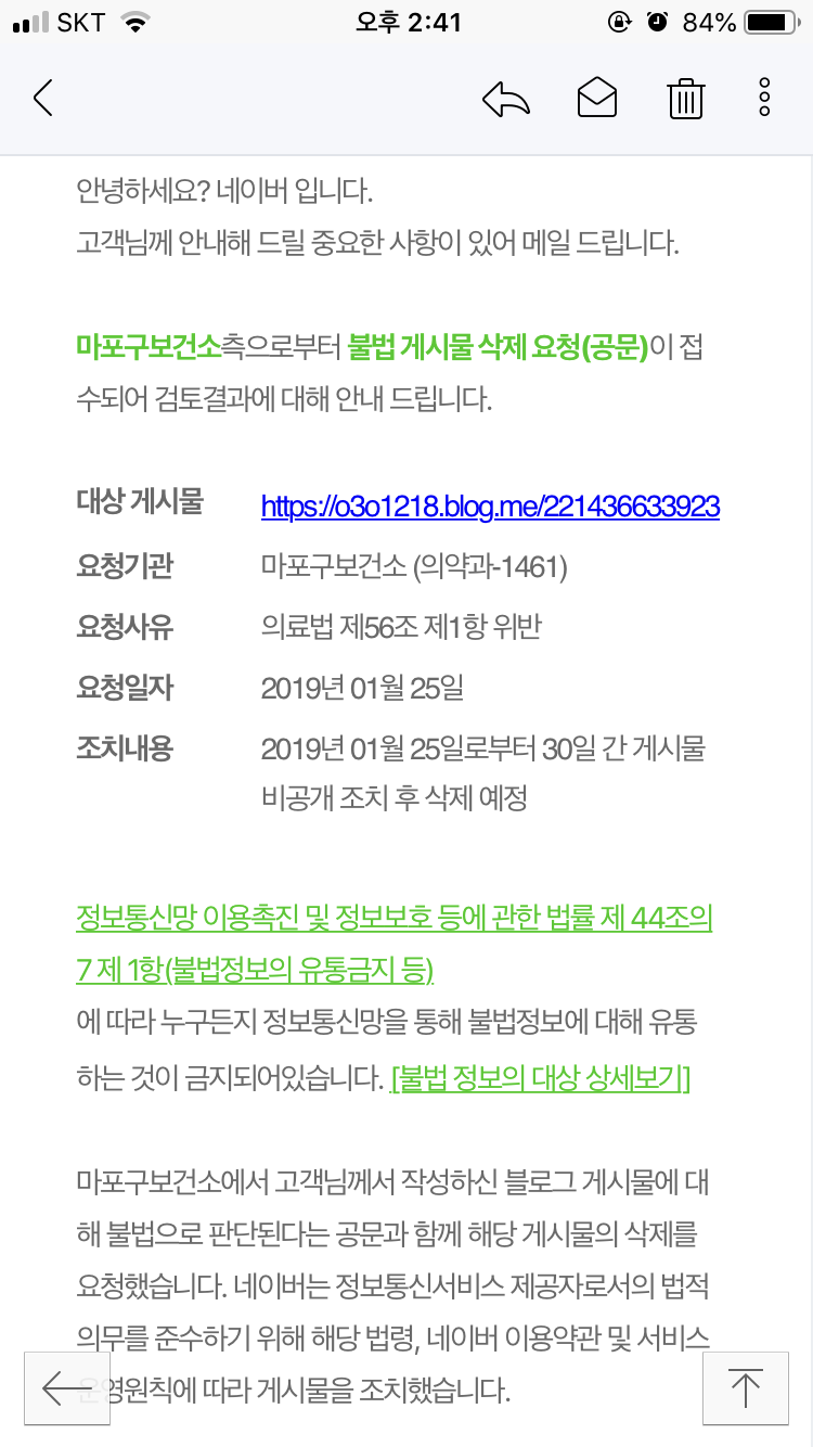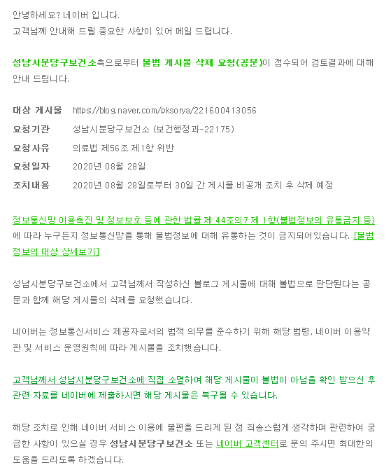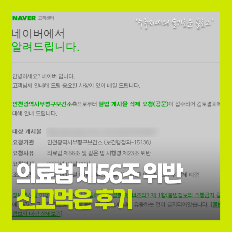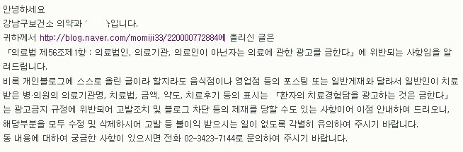 제가 쓴 스마일라식 댓글 글은 인천광역시 남동구보건소에서 삭제요청을 받았습니다. 나는 수술에 정당한 대가를 지불했기 때문에 이것이 의료법에 위배되는 이유를 알았습니다.