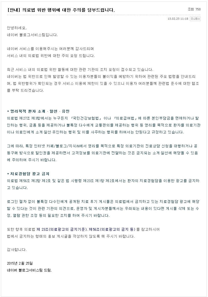 또한 보건복지부 의료광고지침에 따라 특정 의료기관의 구체적인 체험정보를 불특정 다수가 볼 수 있는 공간에 게재하는 것도 금지하고 있습니다(중간 생략). .의료법에 위반될 수 있으며 치료경험의 범주에 해당될 수 있다고 광고에서 치료효과를 잘못 해석할 수 있습니다. 소비자 입장에서는 이 조치가 맞다고 생각합니다. 조금은 아쉽지만 제 무지인 만큼 아직은 주의가 필요하다고 생각하고 다른 글을 올리실 때는 병원 관련 글을 올리실 경우 직접 병원명을 밝히는 것은 금지되어 있으며, 무조건 좋아요 금지(소비자가 판단할 수 있도록). (나쁜 리뷰는 말해도 되는 걸까요? 제 생각에는 당사자가 노출을 원하지 않는다면 + 가격 경쟁은 하지 않는 것이 좋을 것 같습니다) 하니운은 나쁘다고 생각하셔야 할 것 같습니다. 요즘은 뷰티 관련 업계도 스카우트를 하고 있는데요, 소비자 입장에서는 적어도 가성비와 관련된 것들은 바뀔 수 있어요!