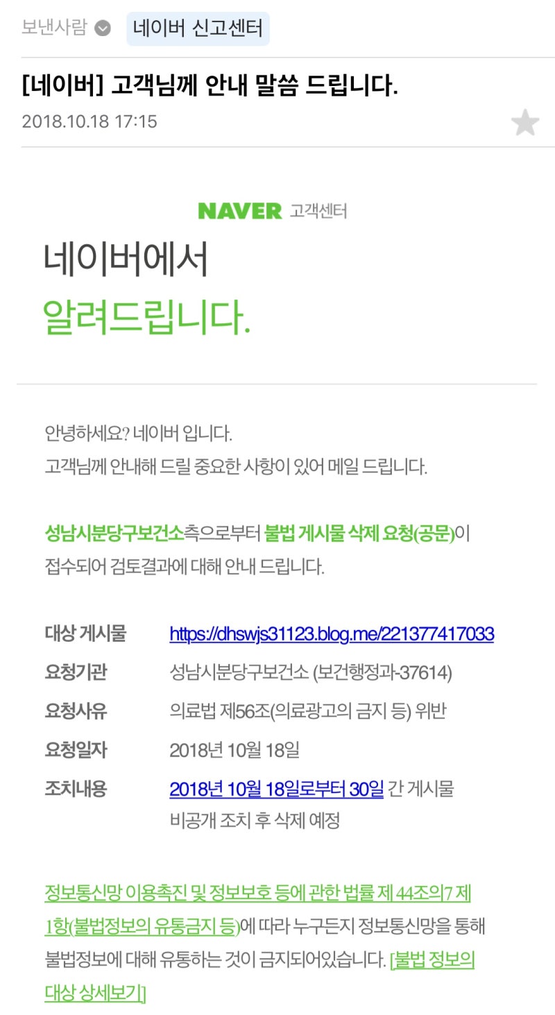 네이버 신고센터에서 추후 조치를 취하라는 메일을 받았습니다. 나는 놀라서 안으로 들어갔다.