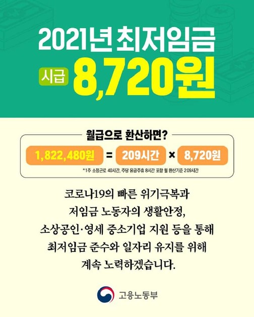 안녕하세요, 노동전문변호사 박주야입니다. 당신은 좋은 주말을 보냈나요? 이날 오전 정부세종청사에서 열린 제15차 최저임금위원회 전원회의에서 2019년 최저임금은 2018년보다 820원(10.9% 이상) 인상된 8350원으로 확정됐다. 이에 따라 주 40시간 근무 기준 월 최저임금은 현행 157만3770원에서 174만5150원으로 월 17만1380원(연 205만6560원) 인상됐다.